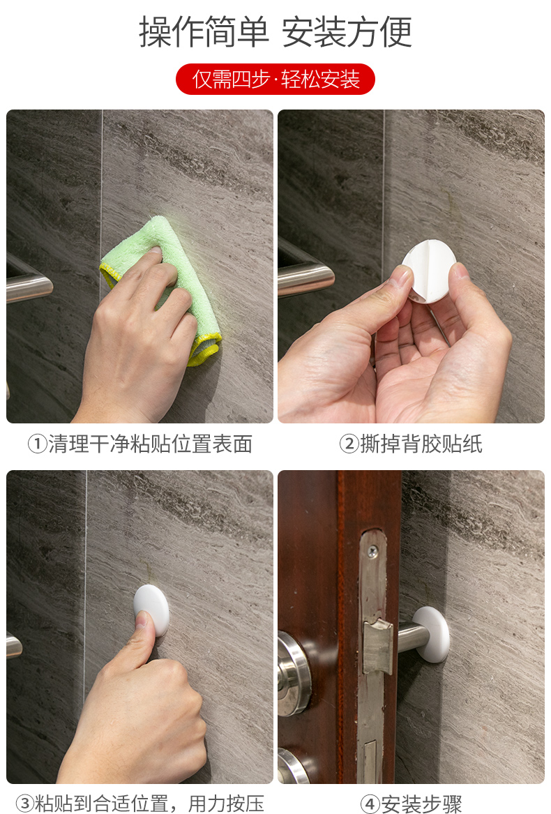 【3M SUPER GLUE】: Door stopper Wall Protector comes with 3M super glue, which has very strong adhesion and can be easily applied to any place you want to stick. And it's very convenient to use, without any installation tools, it's easy to get it.
