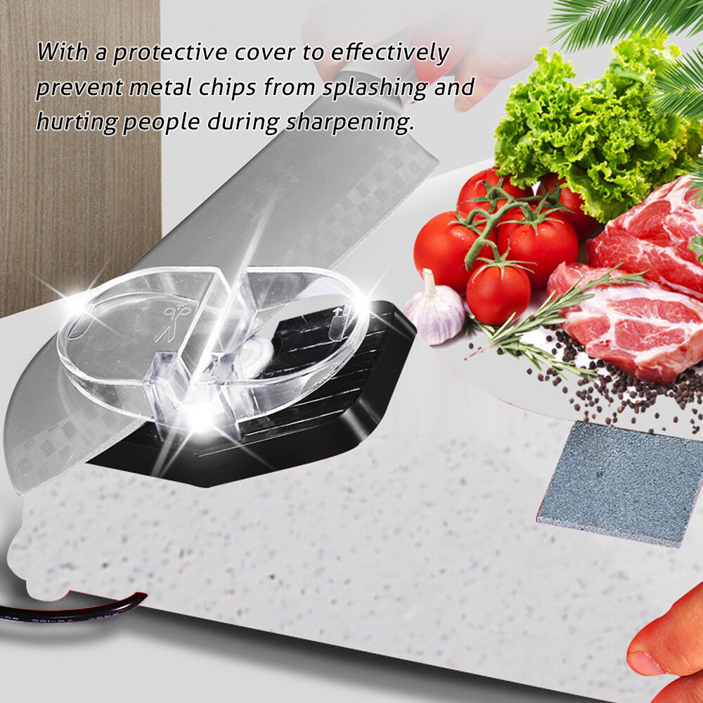 Are you tired and frustrated with dull knives? Our electric knife sharpener is what you need to help you slove your problems. With high-quality white corundum wheel, it's designed to sharpen different kinds of knives and meet different needs. A perfect helper for your kitchen!