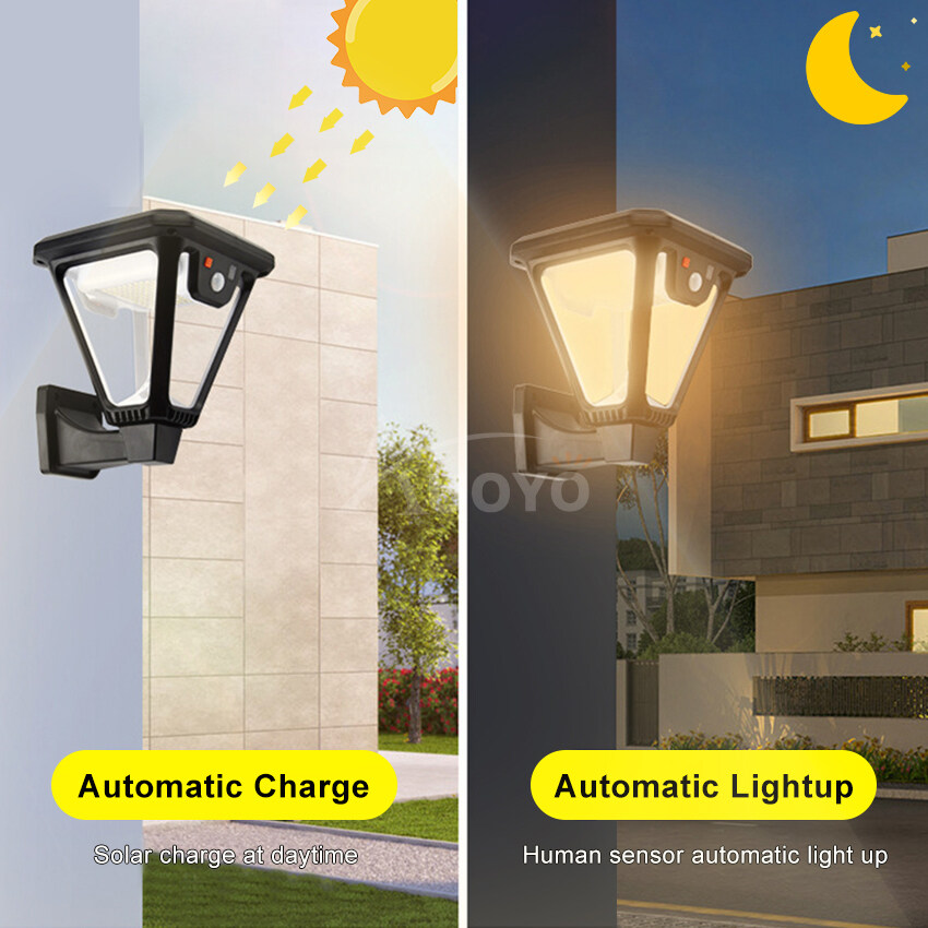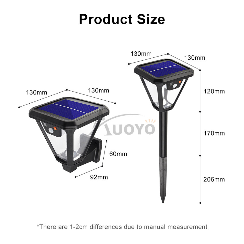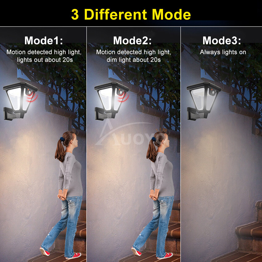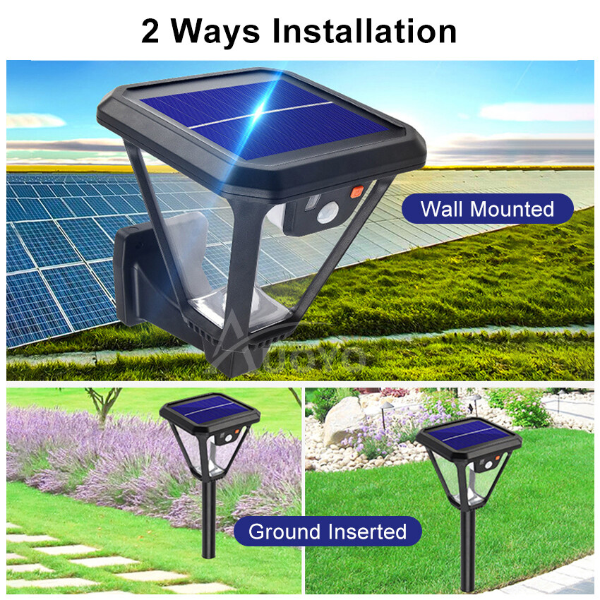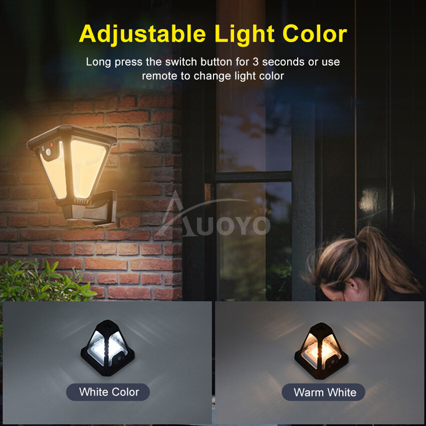 Auoyo LED Solar Wall Light Outdoor White Warm White Solar Motion Sensor Wall Ground Light Street Lamp IP65 Waterproof Adjustable 3 Modes Garden Decoration Street Lamp with Remote Control