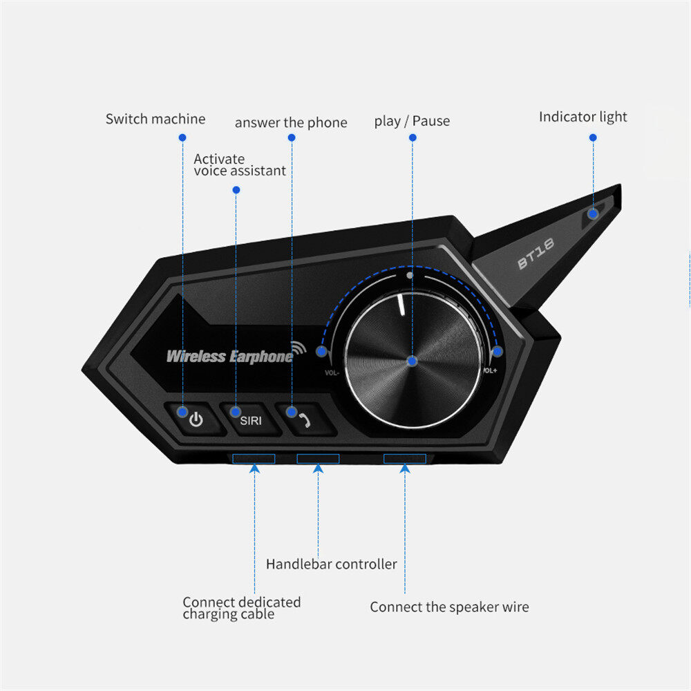 Motorcycle Helmet Bluetooth Headset BT-18 Hands-free Headset Noise Reduction IP67 Waterproof for Helmet Universal