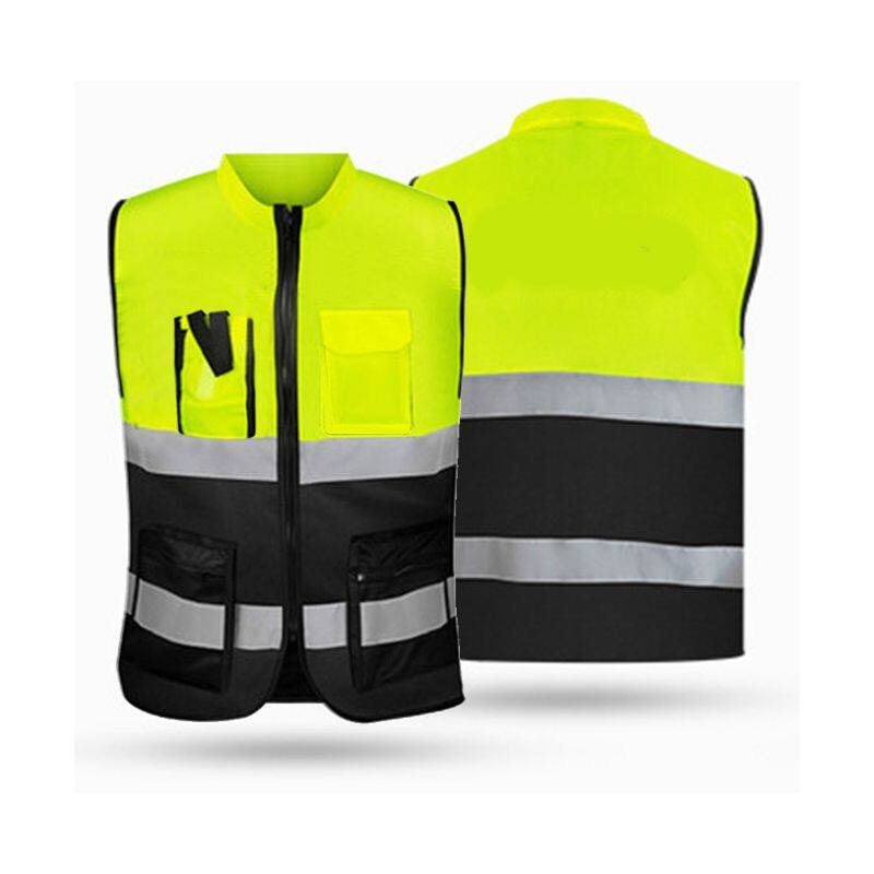 Multi-pockets High Visibility Zipper Front Safety Vest with Reflective Strips Bicycle and Motorcycle Riding Multipurpose