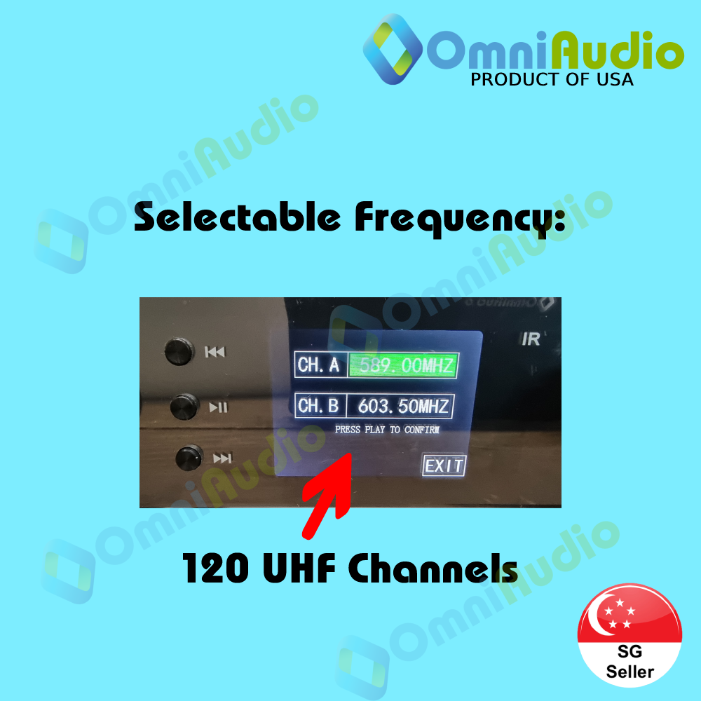 5. 2X Wireless Ultra High Frequency (UHF) 120 Channels Mics