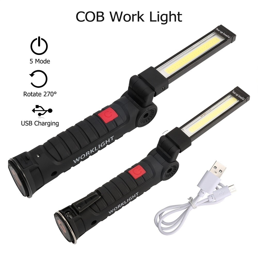 Multi-mode: High COB LED,Low COB LED,LED Flashlight, Red light(long press),flash Red light.