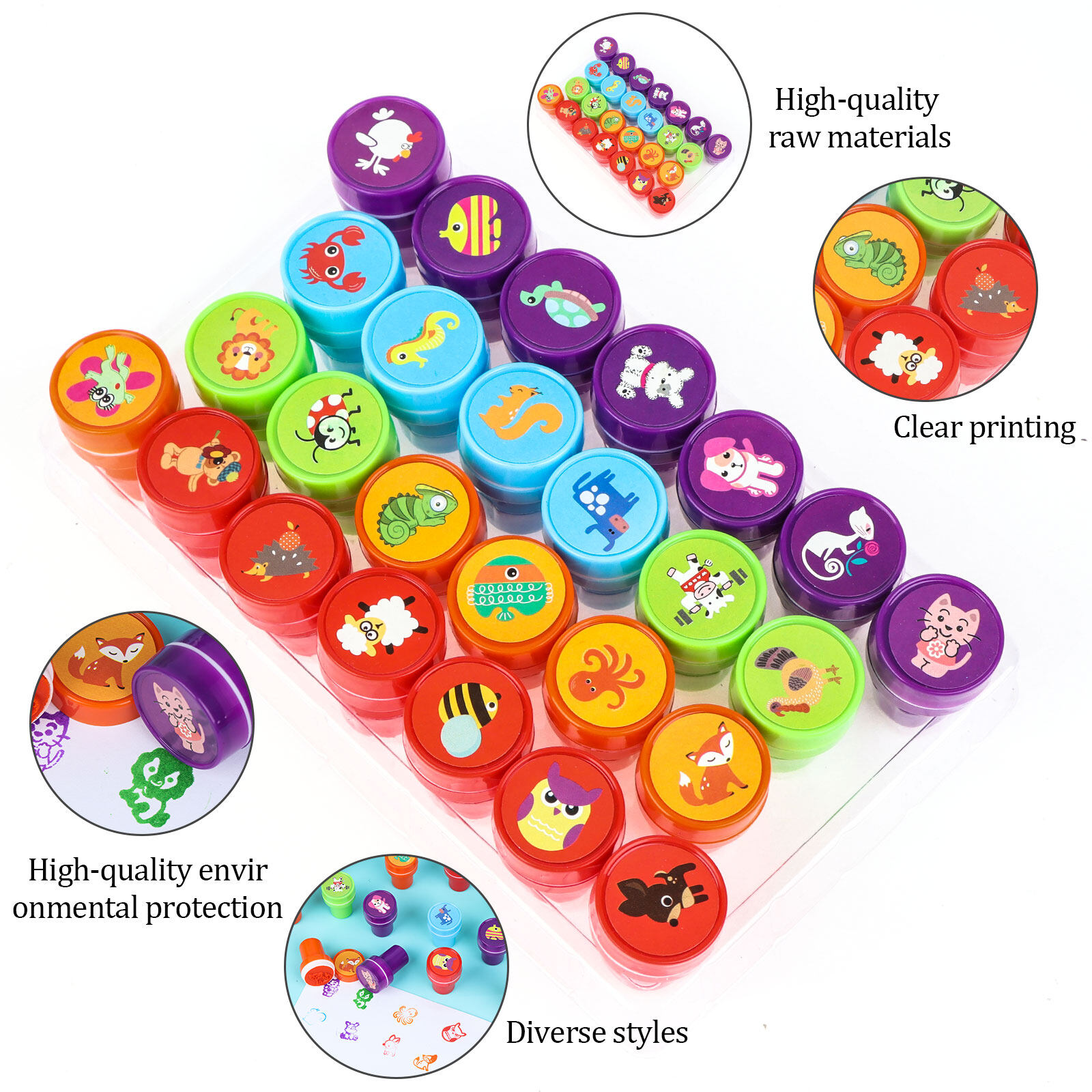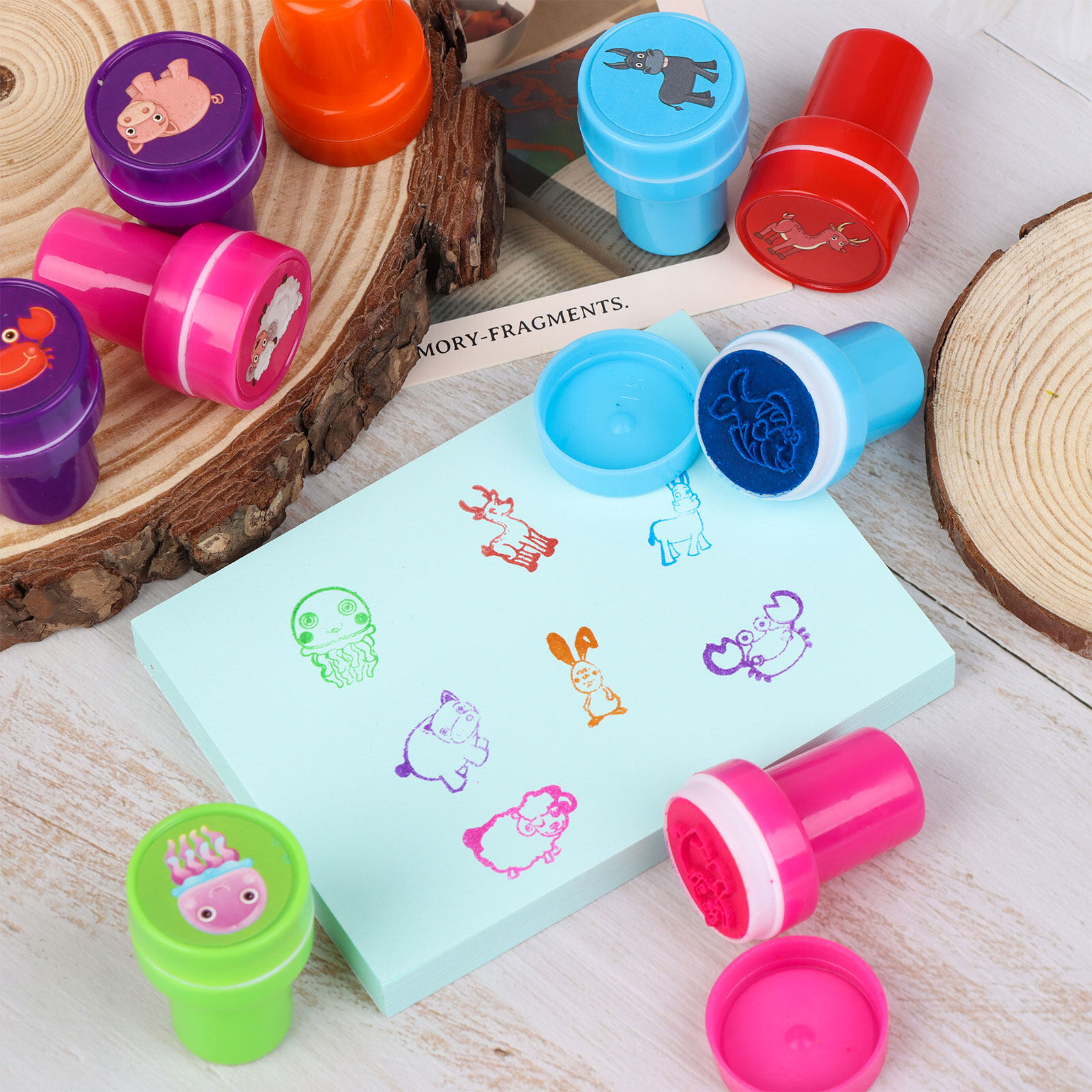 Easy To Use : Each stamp has its own ink, no additional ink pad is needed, just move the stamp cover, and then press the stamp on the paper, you can get a clear cartoon animal print pattern, easy for children to use.