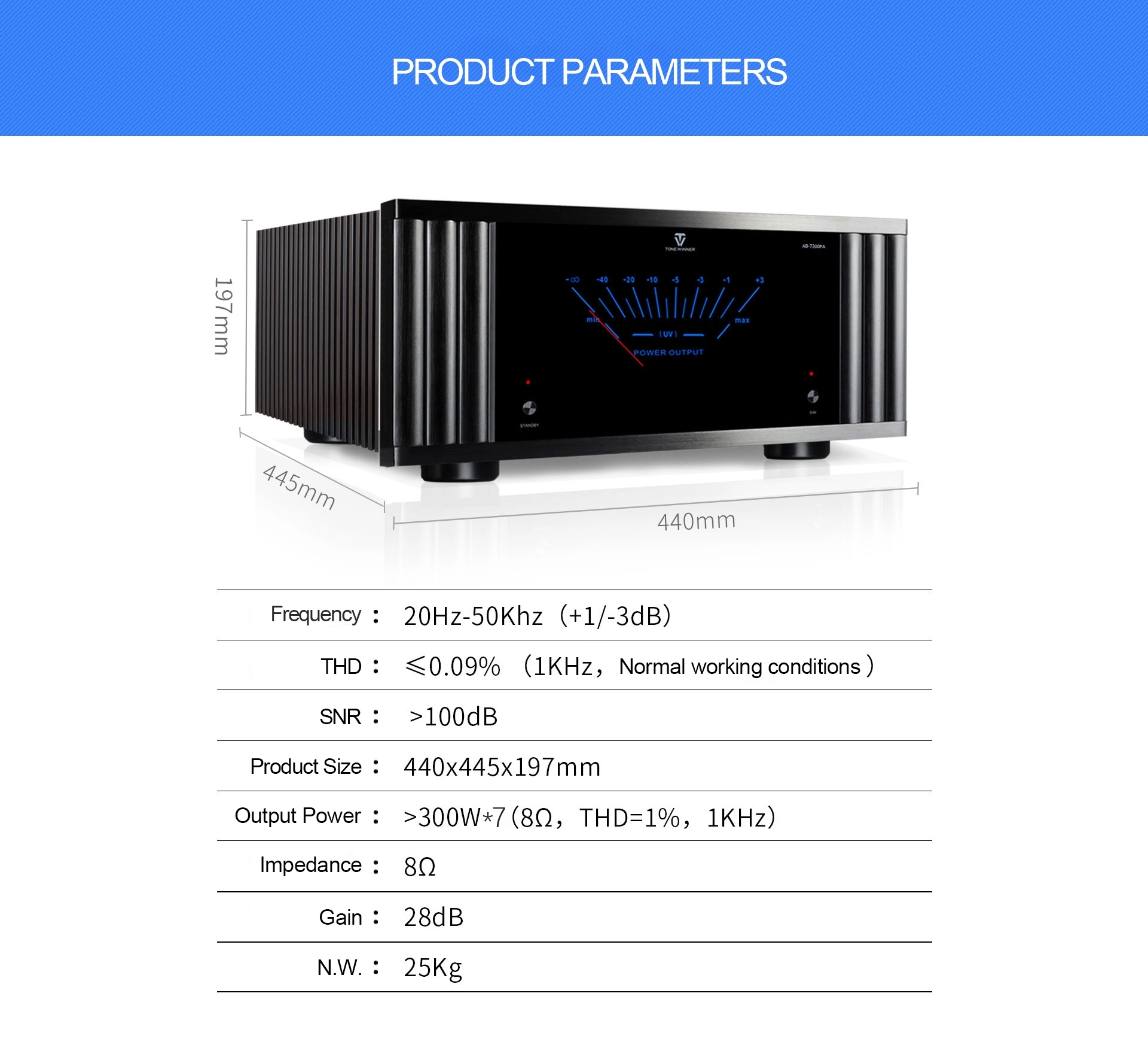 TONE WINNER AD-7300PA Power Amplifier 7 x 300W