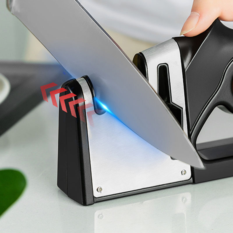 * Material: High grade materials ensure durability.4-slots knife sharpener: With our incredible 4-slot system, including diamond sharpening rod for coarse, ceramic sharpening rod for fine sharpening and polish, tungsten sharpening rod for blunt blades and scissors sharpening rod.