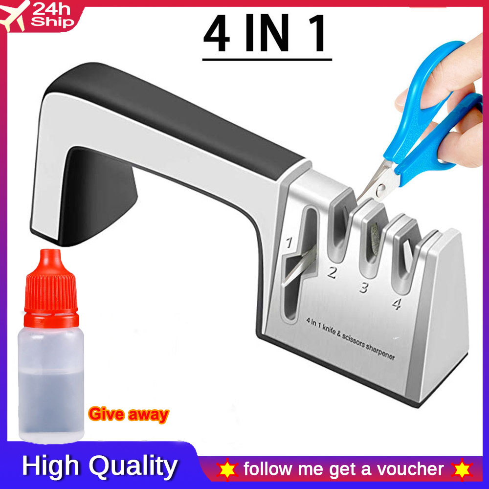 [SG Stock/1 Day delivery] ?Buy one get a gift? 2022 New 4 in 1 Handheld Non-Slip Knife Sharpener Kitchen Knives Grinder Diamond Ceramic Stone Professional New 4 Stages Sharpener Tools For Scissors Kni