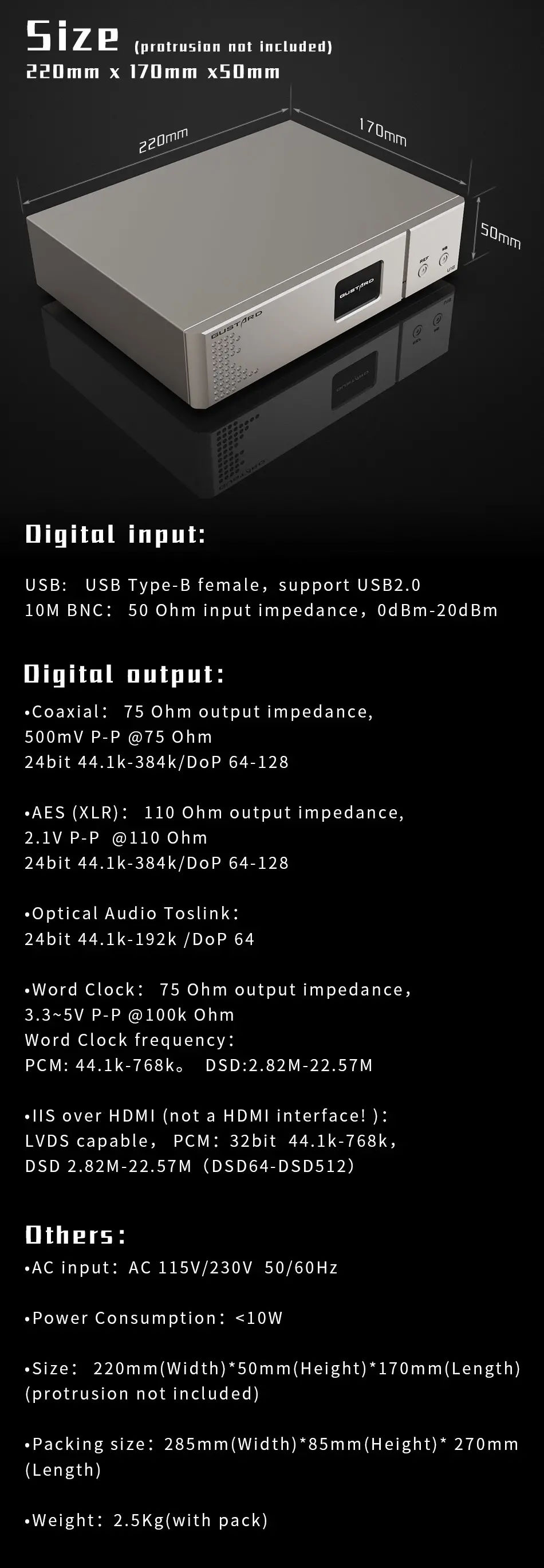 Output : 1x optical, 1x AES, 1x Coax, 1x IIS, 1x WCK