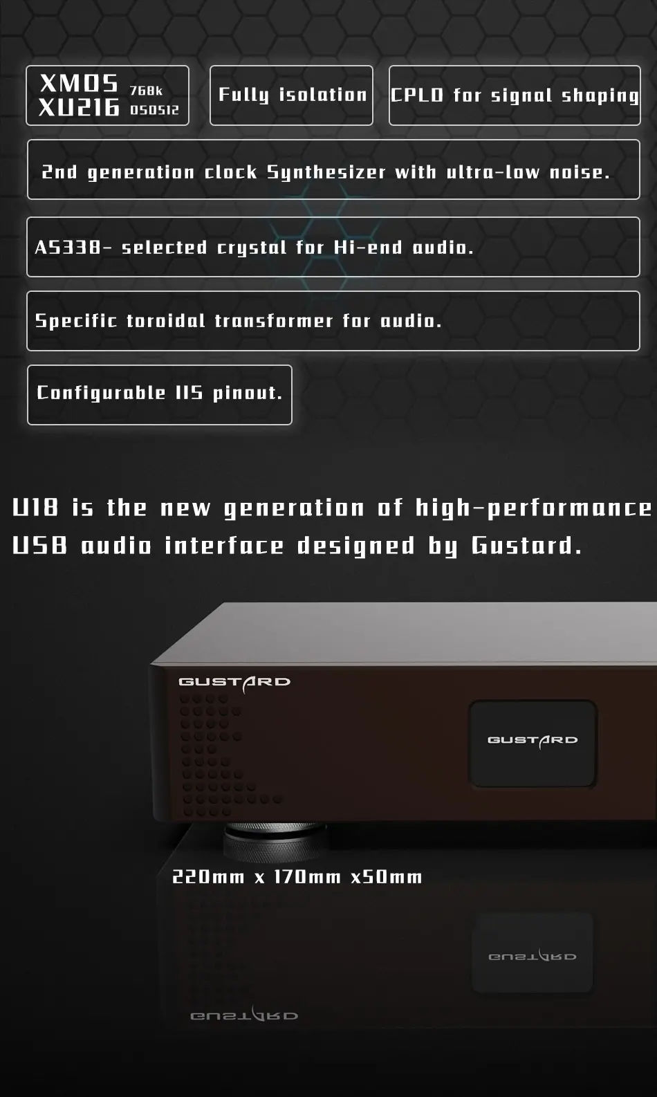 GUSTARD U18, USB Isolator Interface, Ultra Low Noise Accusilicon Clock +Synthesizer, Hifi Audio