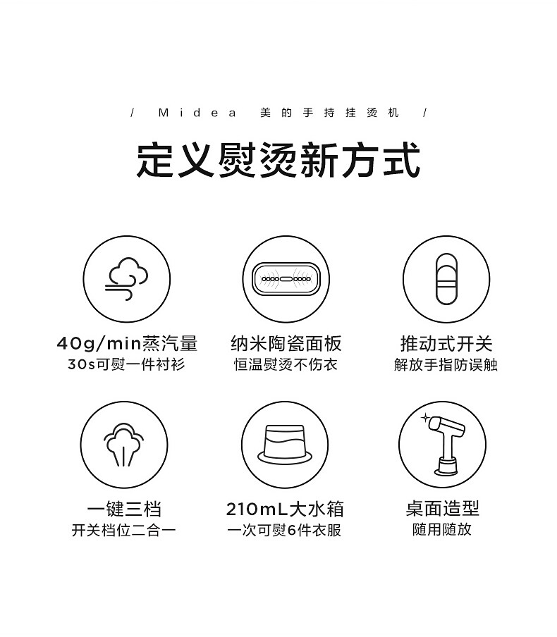 Midea Dry wet double ironing garment steamer Hand held hanging ironing machine large steam electric iron , Portable travel dormitory ironing machine