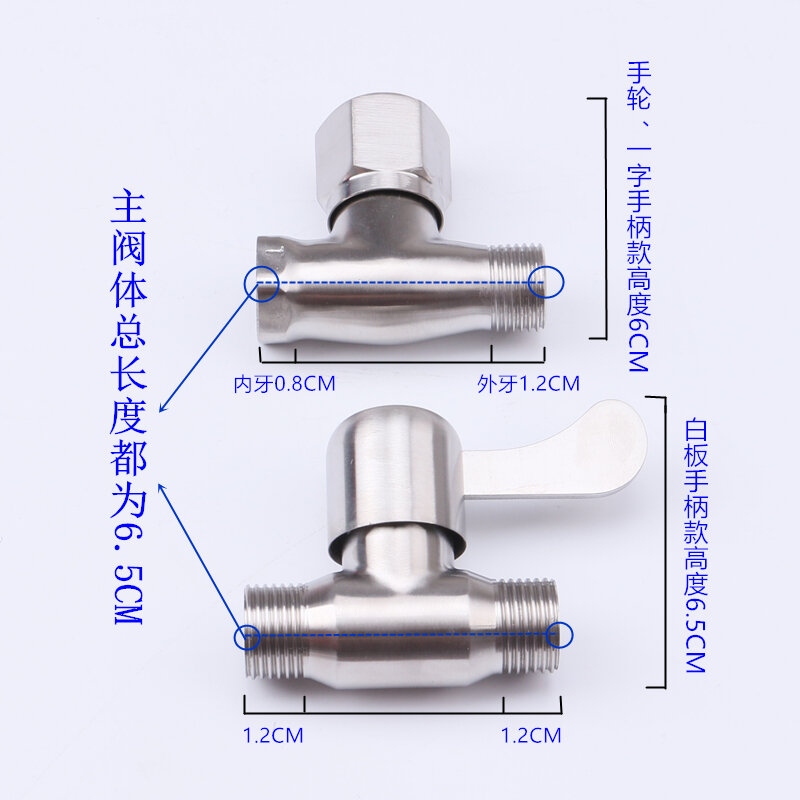 304 Stainless Steel Direct Valve 4 Points 6 Points Open-Mounted Pipe Double Internal and External Wire Thread Straight Angle Valve DN15 All Steel Fast Switch