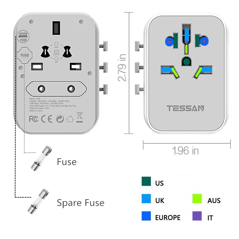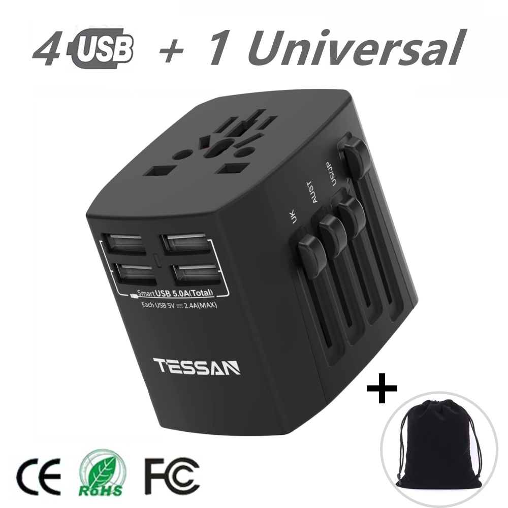 TESSAN Universal Adapter International Travel Adapter USB Charger Multi Ports with 4 USB Outlets, Universal Traveller Power Plug Travel Adaptor Universal, Worldwide All in One Wall Charger Converter f