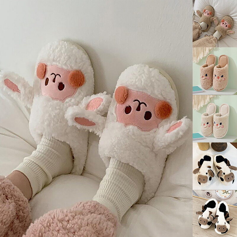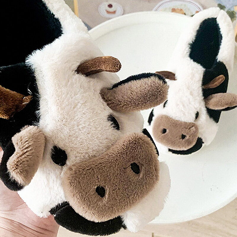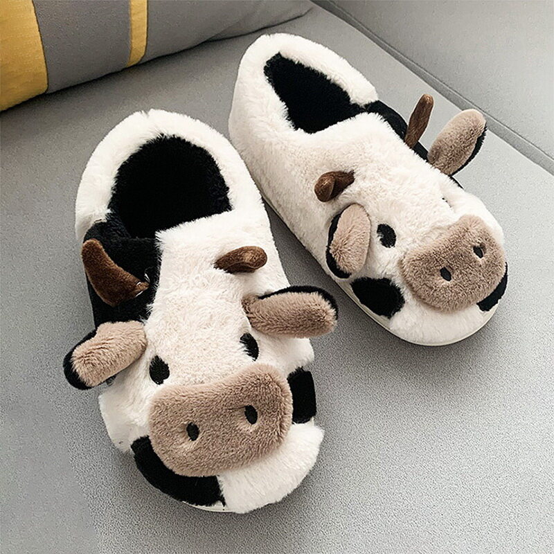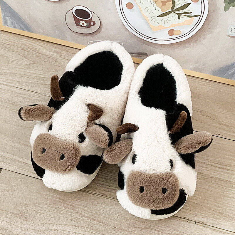 Cute Animal Slipper For Women Girls Fashion Kawaii Fluffy Winter Warm Slippers Woman Cartoon Milk Cow House Slippers Funny Shoes