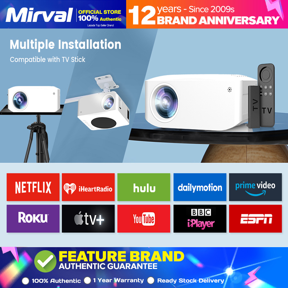 Except for wifi wireless connection, It’s also equipped with HDMI port, USB port, 1 AV, 3.5mm audio port, which allows you to connect with TV Stick / Roku Streaming Stick / Chromecast / Laptop / DVD / PS4 / TV box Indoor and Outdoor Use: It can be used both indoor and outdoor. But for outdoor use, please use it at night for better watching experience. Connect with TV Stick/TV Box: To watch Netflix, hulu and disney, please plug a TV stick into the projector. Then you could watch these apps on the projector. When connecting with smartphone, it can't support these apps.