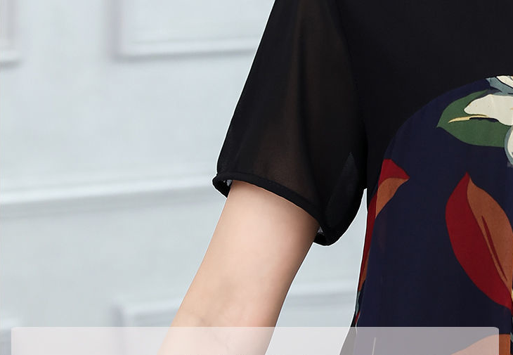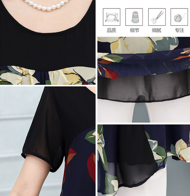 EDQRDQ Womens Lightweight Double-Layered Printed Chiffon Short Sleeve Mesh Blouse Loose Flowy Tops with Elasticity