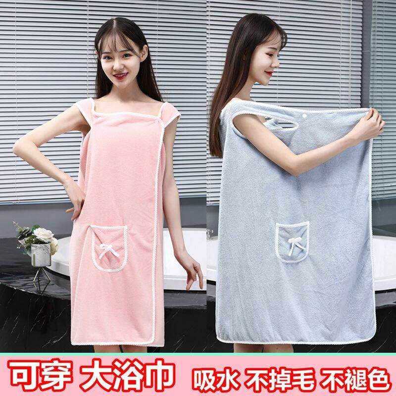 Women's Bath Towel Can Be Worn and Wrapped Summer Household Non-Pure Cotton Absorbent Quick-Drying No Lint Internet Celebrity Bath Skirt Cute Tube Top Bathrobe