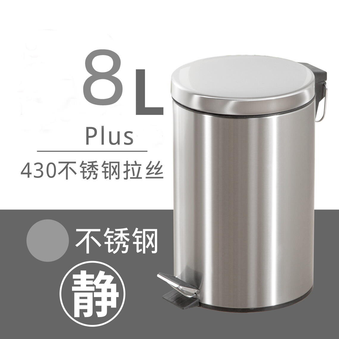 Trash Can Household Shanghai Wet and Dry Japanese Style Living Room Kitchen Stainless Steel Bathroom Pedal Trash Can Mute