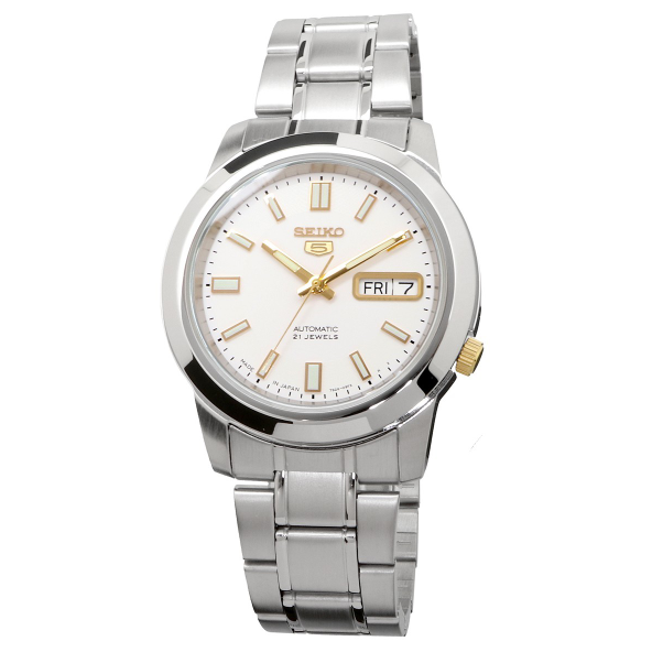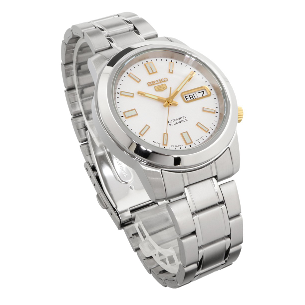 [Vinstore] Seiko 5 SNKK07J1 Automatic Japan Made Two Tone Stainless Steel White Dial Men Watch SNKK07J SNKK07