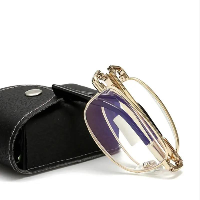 Folding Reading Glasses with Leather Case Anti-Blue Anti-Radiation Progressive Bifocal Glasses for Men Portable Magnifying Eyeglasses +100~+400 PTQ