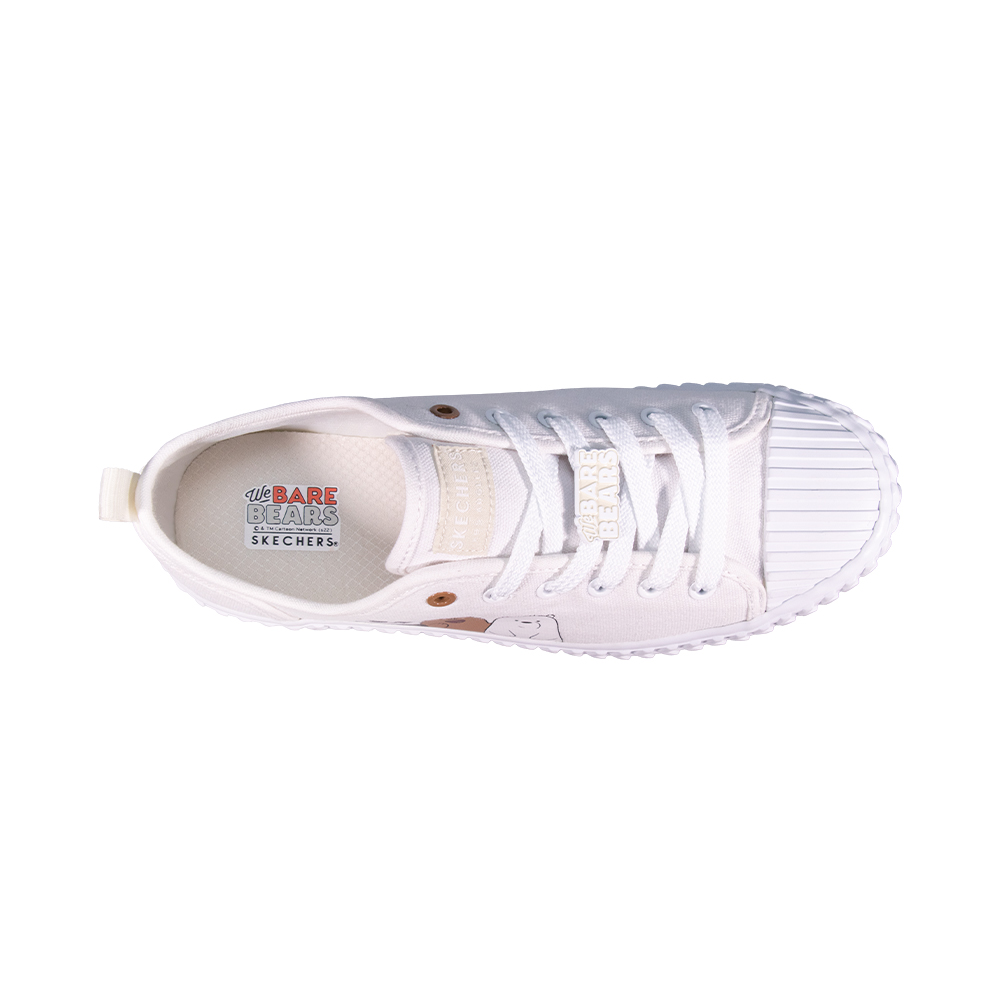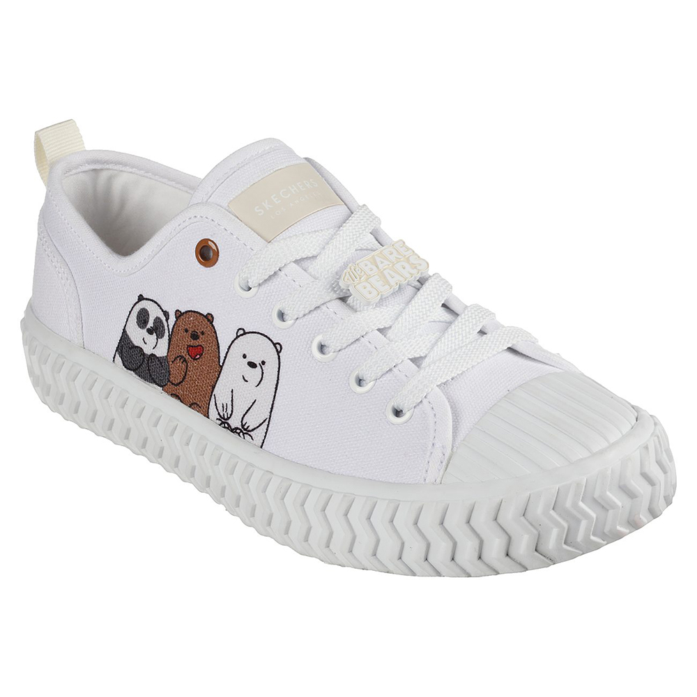 Description: Embark on an exciting journey with the We Bare Bears as they set on an adventure to fit into the human society. Channel your love for the bears in the Skechers Women We Bare Bears SKECHERS Street Street Trax Shoes. Soft woven canvas fabric upper in a lace up casual classic textured vulcanized midsole sneaker with shell toe overlay and stitching accents. Air Cooled Memory Foam insole. Features: - Air Cooled Memory Foam cushioned comfort insole - Machine Washable design - gentle cycle cold, hang to air dry - Soft fabric shoe lining - Padded collar and tongue - Skechers® logo details