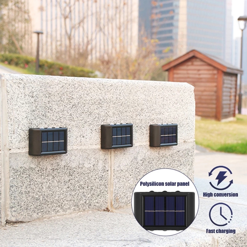 Solar outdoor home wall lamp, with up and down lighting design, creating attractive light and shadow.