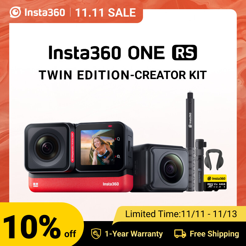 Insta360 ONE RS – Waterproof 4K 60fps Action Camera & 5.7K 360 Camera with Interchangeable Lenses, Stabilization, 48MP Photo, Active HDR, AI Editing