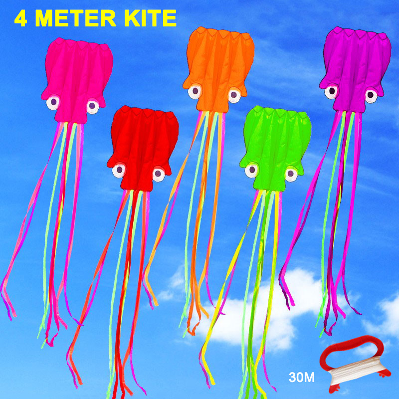 【In stock 】4M Large Kite Easy Fly Stunt Foldable Big Octopus Kite with 30m Flying String kite for adults kids