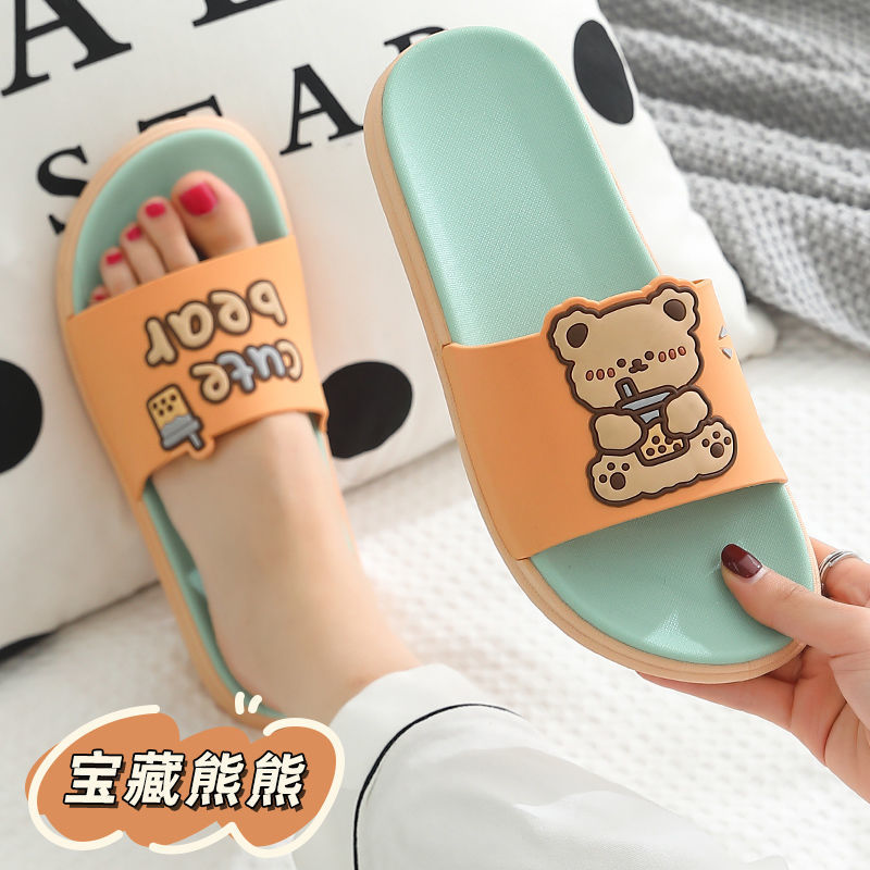 Women House Slippers Summer 2022 Popular Comfortable Non Slip Student Girl Cartoon Cute Bear Soft Sole Sandals Bathroom Trend Female Slippers