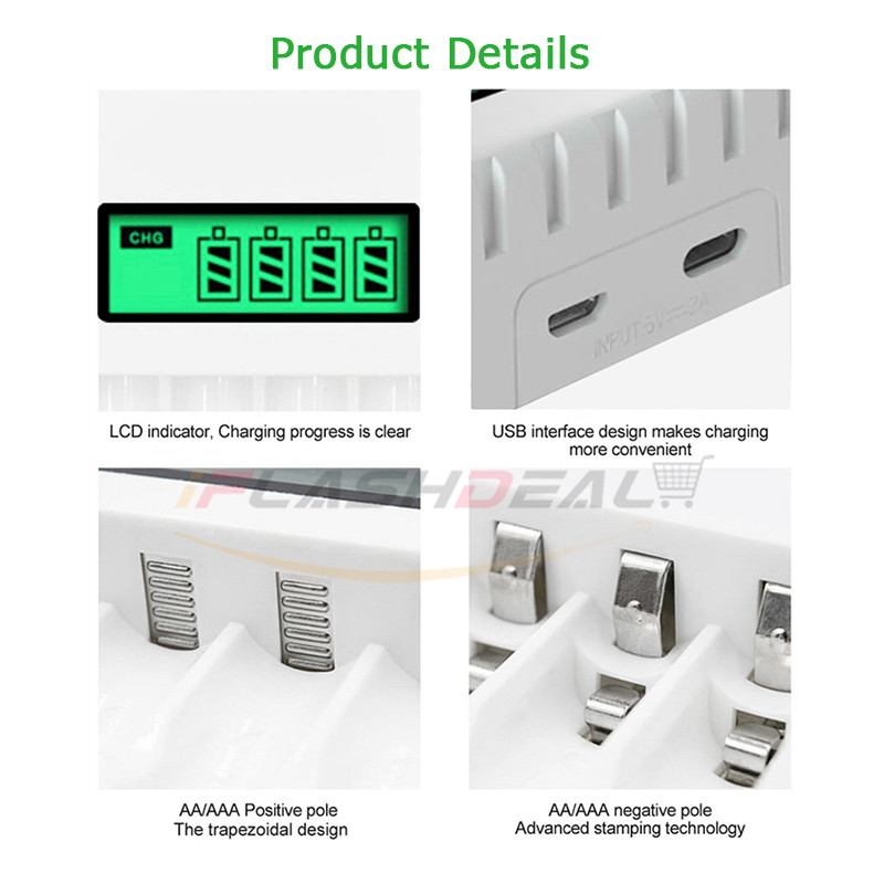 iFlashDeal Electric Battery Charger 4 Slots Intelligent LED Indicator USB Charger Home For AA/AAA Ni-MH/Ni-Cd Battery Charger Fast Intelligent 4 Slots LCD Battery Charger With USB Cable Portable Fast