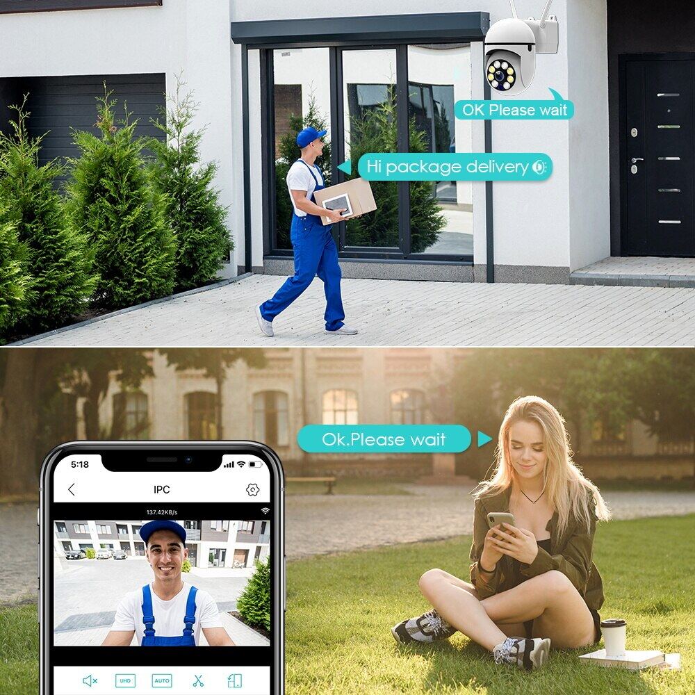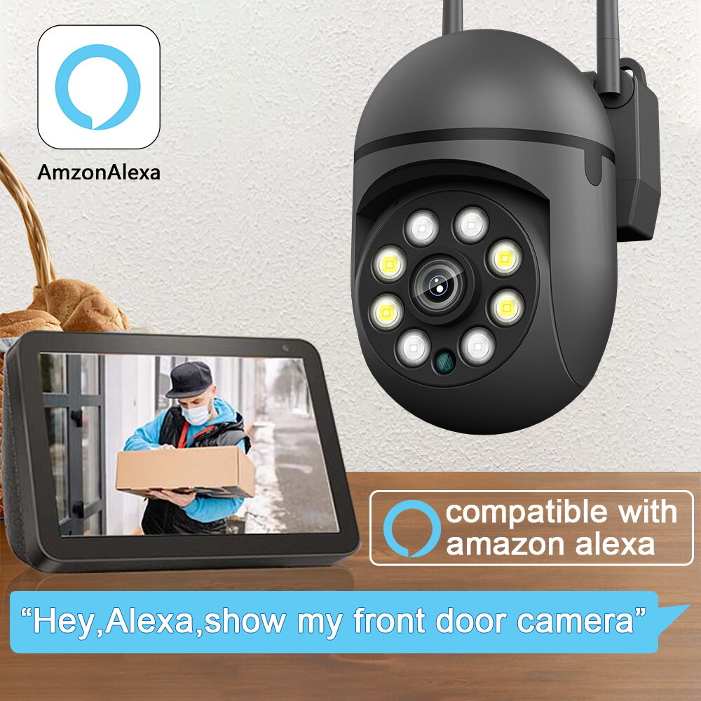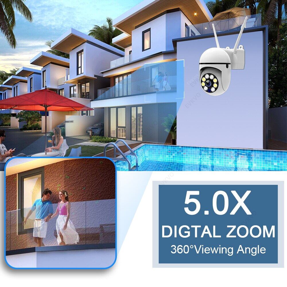 EVKVO With Alexa 5MP 5G WiFi IP Camera 5X Zoom Outdoor Surveillance Camera Color Night Vision Ai Human Detection Security CCTV Mini Camera