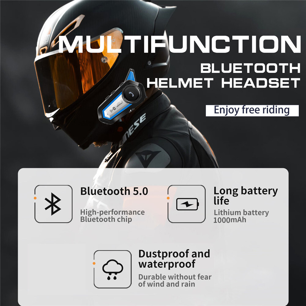 Motorcycle Wireless Headset Bluetooth 5.0 Helmet Headphone Waterproof Noise Reduction Long Standby Cycling Handsfree Mic Earphone
