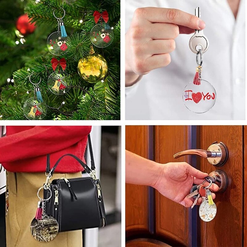 Double-side can be designed, you can draw, carve, or paste your own favorite sticker on the acrylic circle keychain blanks, which make your DIY project more distinctive and creative, perfect for DIY your own keychains