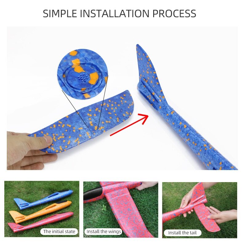Features:100% Brand new and high quality. HIGH QUALITY :made of EPP high-polymer material,light weight, good flexibility and impact resistance,can bend,not easy to break.the material is no harm to the body.FLYING LONGER:aerodynamics principle design,verisimilitude highly-degree flying simulator,improve the ability of gliding in the air.EASY CARRY:aircraft consists of the fuselage and two wings, easy to assemble and disassemble, easy to carry to the wild to play.BEST GIFT: the best outdoor gift to 4-14 years old children,aviation and airplane theme parties,various festivals gift,such like Christmas, Thanksgiving, Halloween and EasterMain features: Easy to install: suitable for children and teenagers.Streamline design: beautiful color and circulation design, highly-degree flying simulator, looks more verisimilitude.With fancy LED lights, brilliance in the night sky.Double-wing structure: lifting body design to improve the ability of gliding in the air.Material: EPP foam.Size:About 36cm,49*48cmStyle:A. B.As pictureColor:Sent RandomlyPackage Include:1pc Epp Foam Airplane Toy