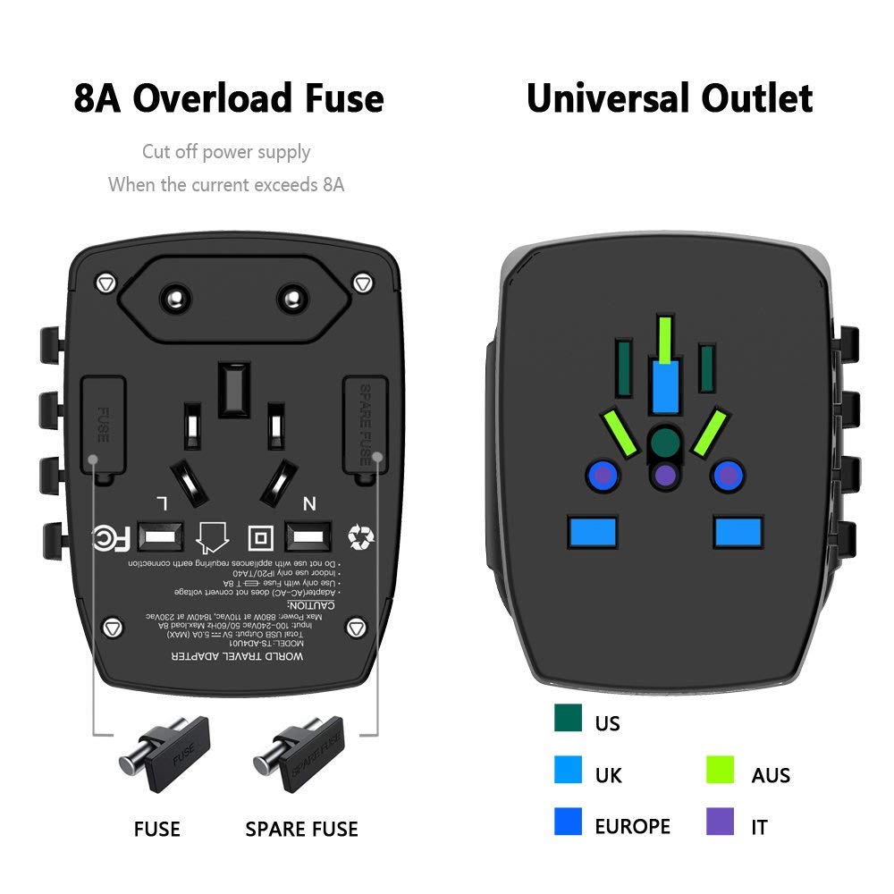 TESSAN Universal Adapter USB International Travel plug Worldwide USB Charger for 224+ Countries Travel Plug Adaptor with 4 USB Ports + Universal AC Charging for International Use for Europe Germany UK