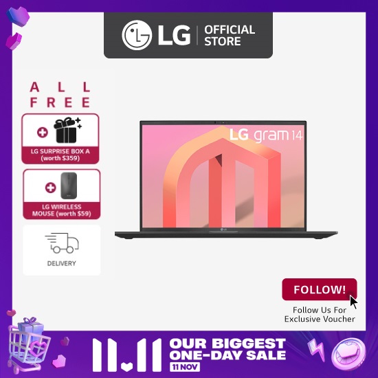LG gram 14Z90Q 14" Laptop, 12th Gen Intel Core i5 processor, 16GB RAM, 512GB SSD, Win 11, 2 yrs warranty, + Free Delivery + Free Gift*