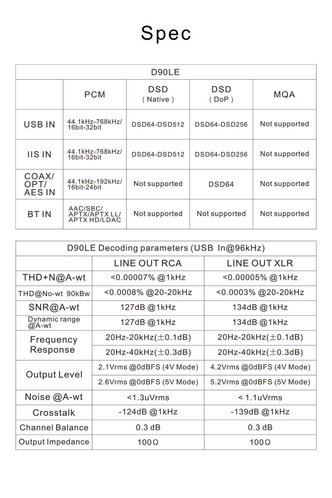 > Output Level: 4.2Vrms@0dBFS(4V Mode), 5.2Vrms@0dBFS(5V Mode).