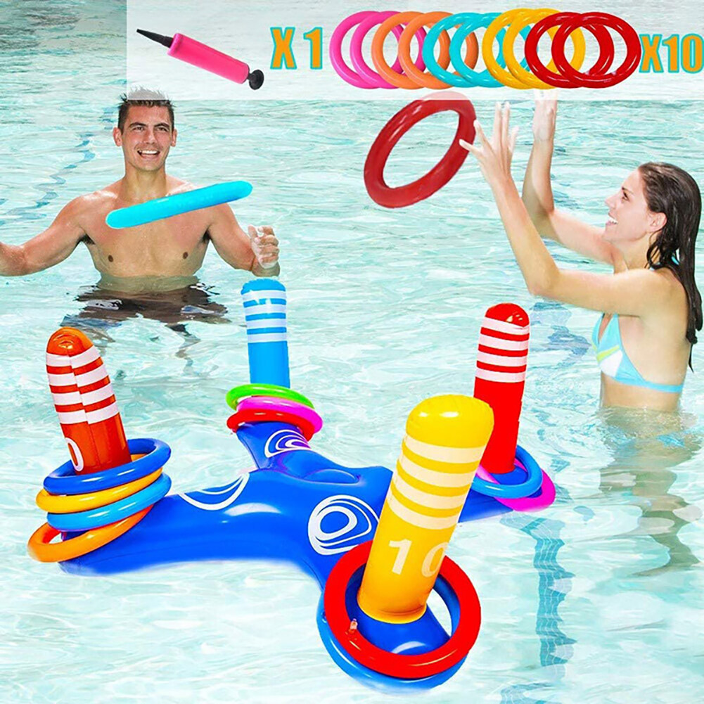 YS Inflatable Pool Ring Toss Games Kit With Rings Multiplayer Pool Throwing Game Kids Family Water Fun Beach Party Toys