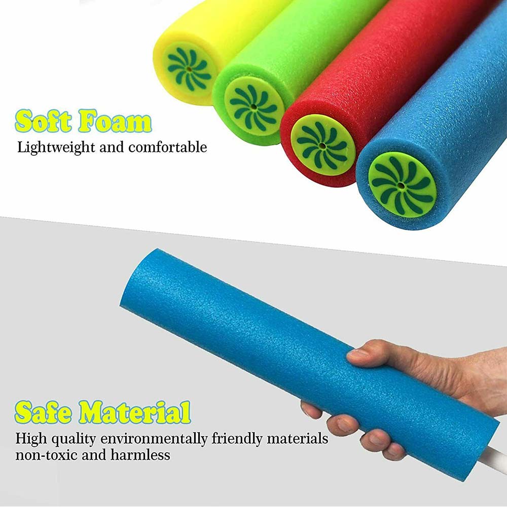 [Safe and efficient]: This water gun is made of foam and plastic. It is the safest, lightest and easiest to use water gun. Using environmentally friendly materials, the foam material feels softer and will not harm the delicate skin of kids.