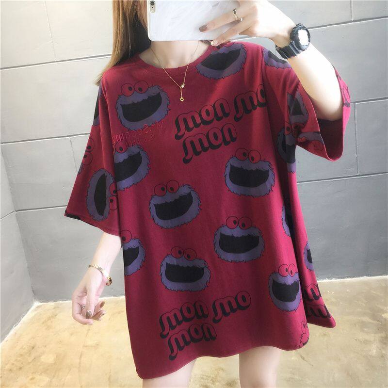 Korean Version Women Short-sleeved T-shirt Women Plus Size Loose Round Neck Casual Top
