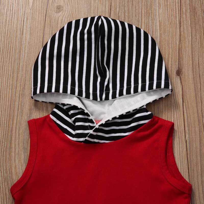 2pcs Toddler Baby Boy Hooded Vest+Striped Pants Outfits!