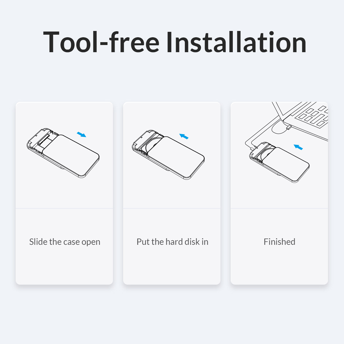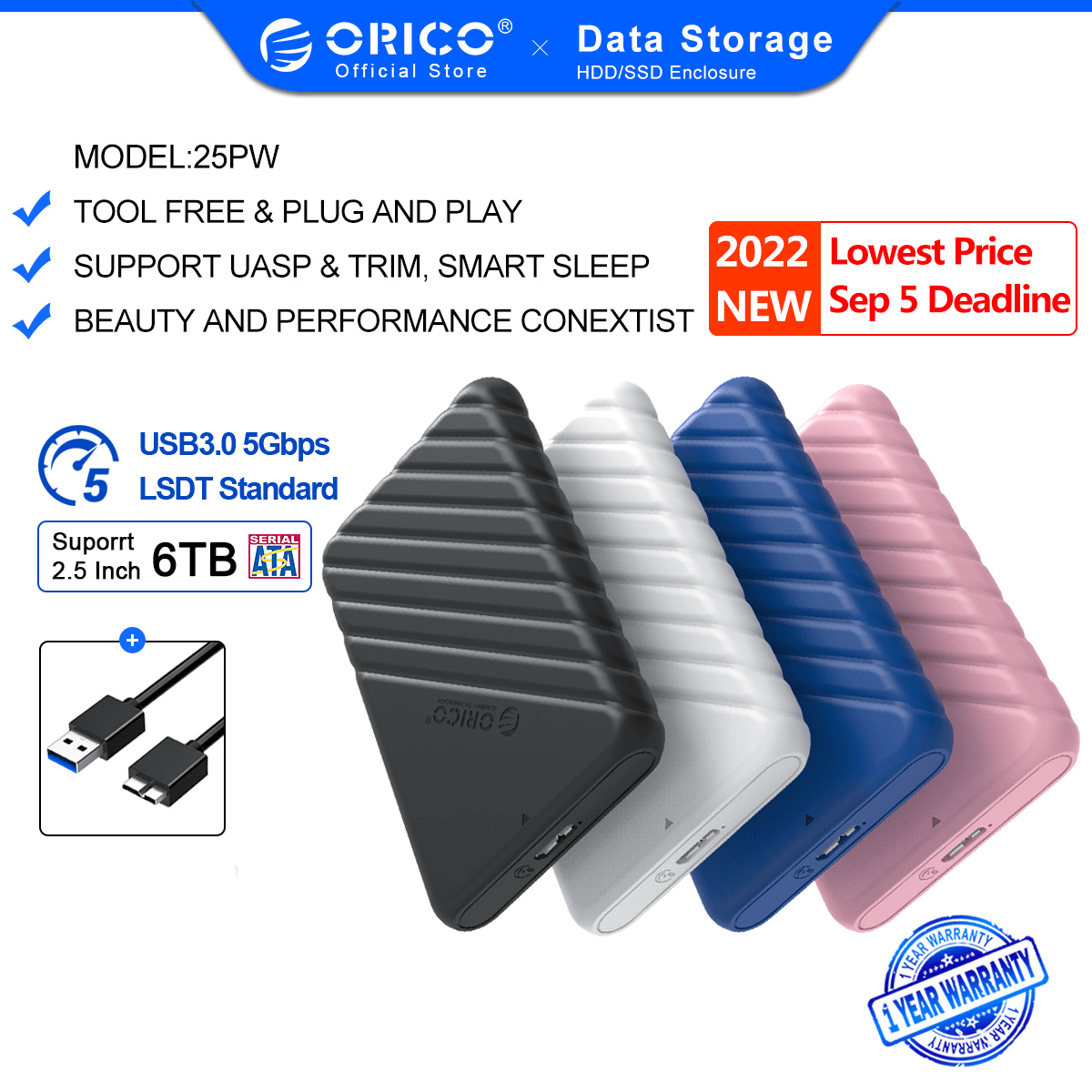 2.5 inch Hard Drive Enclosure, ORICO SATA to USB 3.1 Tool Free External Hard Drive Case Supports UASP TRIM Smart Sleep, SATA Adapter USB 3.0 to SATA III for 2.5 Inch SSD & HDD 9.5mm 7mm, Max 6TB Compa
