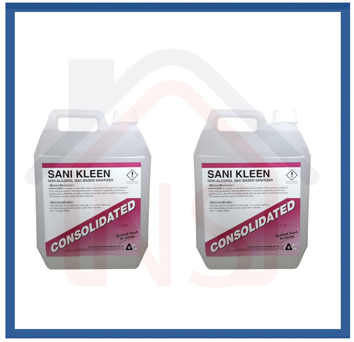 Sani Kleen is an alcohol-free, water-based hand sanitizer suitable for rinse-free hand application and surfaces. It contains over QACs and kills 99.999% of bacteria and germs on hands and surfaces without water. It contains QAC disinfectants and can help with infection control. Product is recommended to be used neat to ensure full efficacy.