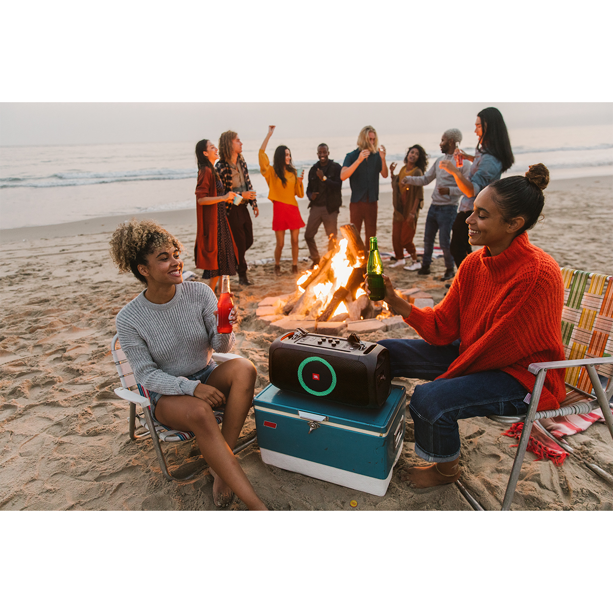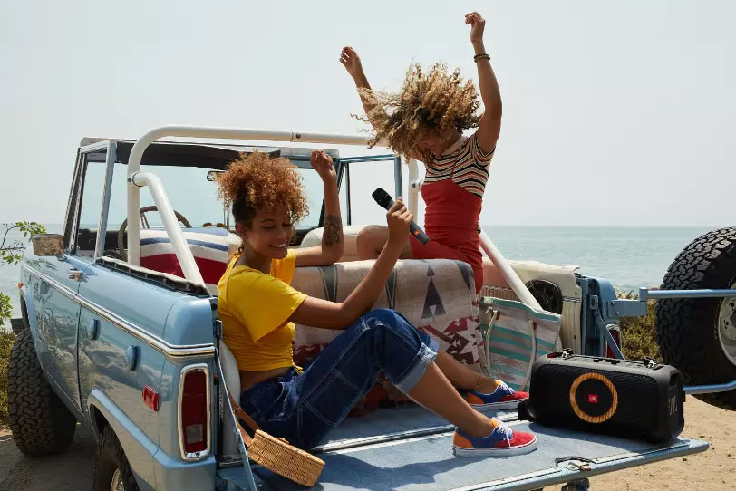 - AMAZING JBL ORIGINAL PRO SOUND: Find your beat with 100W of powerful JBL Original Pro Sound. Indoors or out, the JBL PartyBox On-The-Go delivers crisp highs, pure mids, and deep bass, with Bass Boost to keep the good times going all night.
