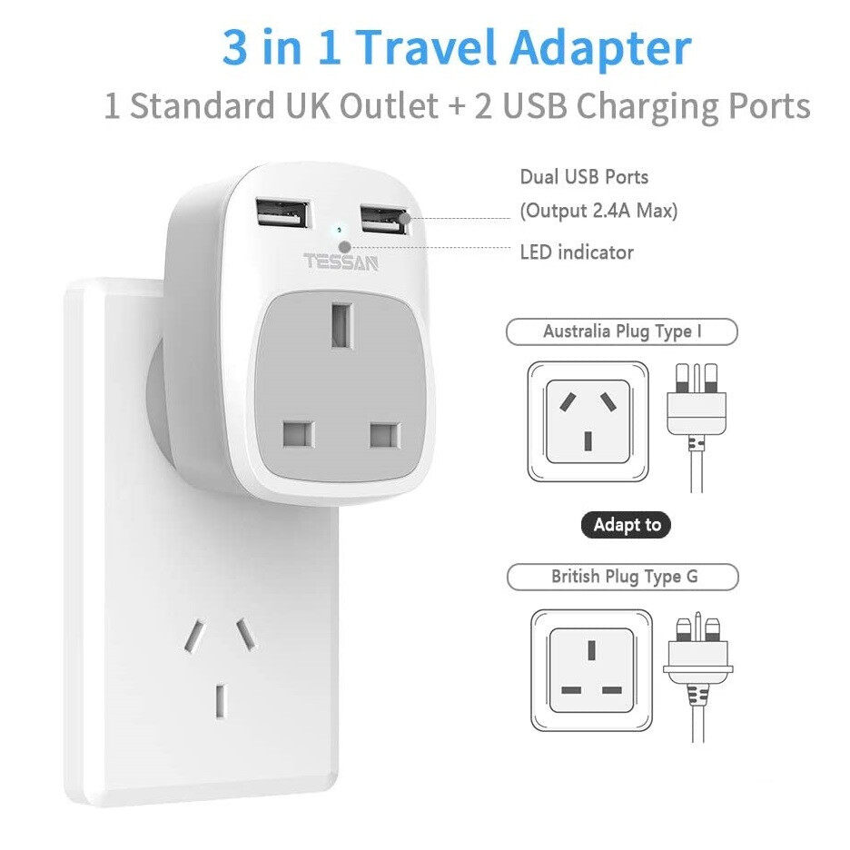 TESSAN China Australia Travel Adapter with 2 USB Ports