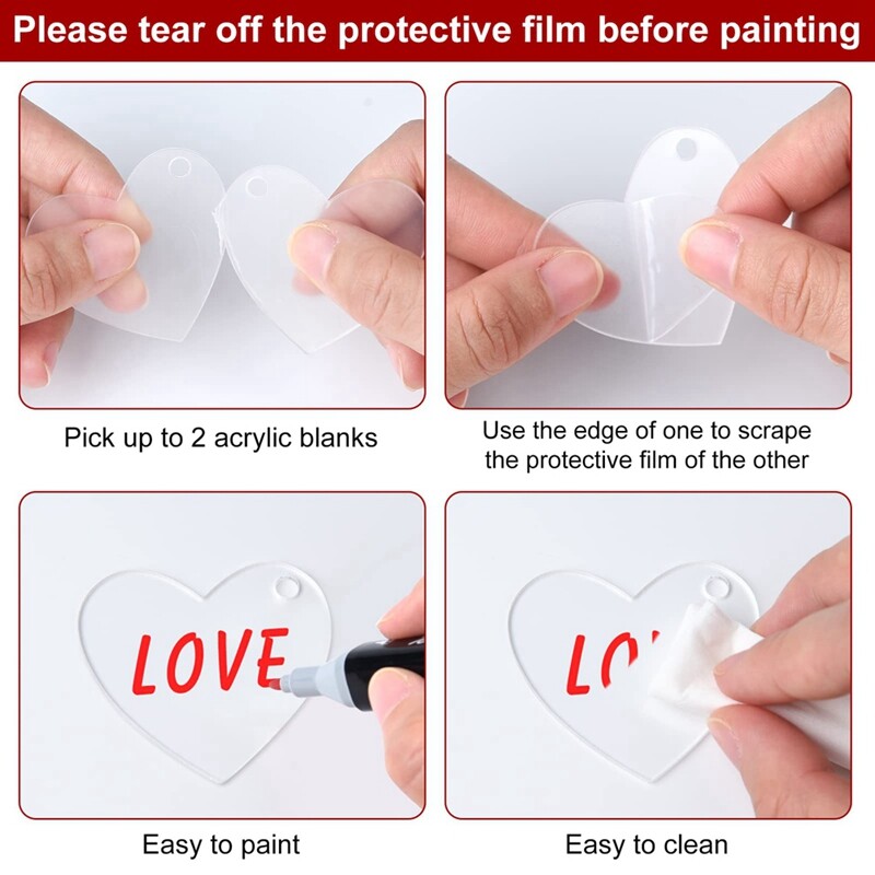 Blank Heart Design: the acrylic keychains blank are featured with blank and smooth surfaces, which allows you to paint, carve, write patterns or or paste your own favorite sticker. Great for making unique gift for friends and family