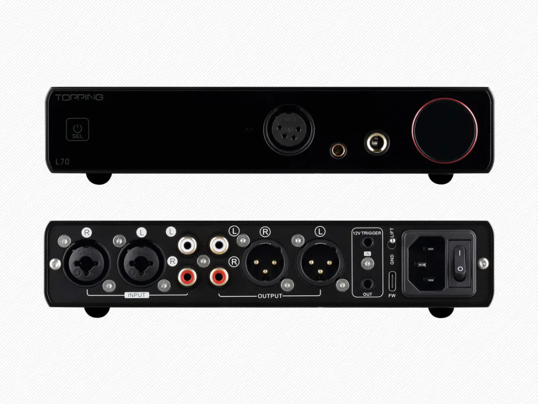 > TOPPING designed the L70 to be able to power the vast majority of headphones. With high output voltage, it easily drives high impedance headphones. With high output current, it easily drives low impedance headphones. And with low output noise, it easily powers highly sensitive IEMs without creating background hiss.