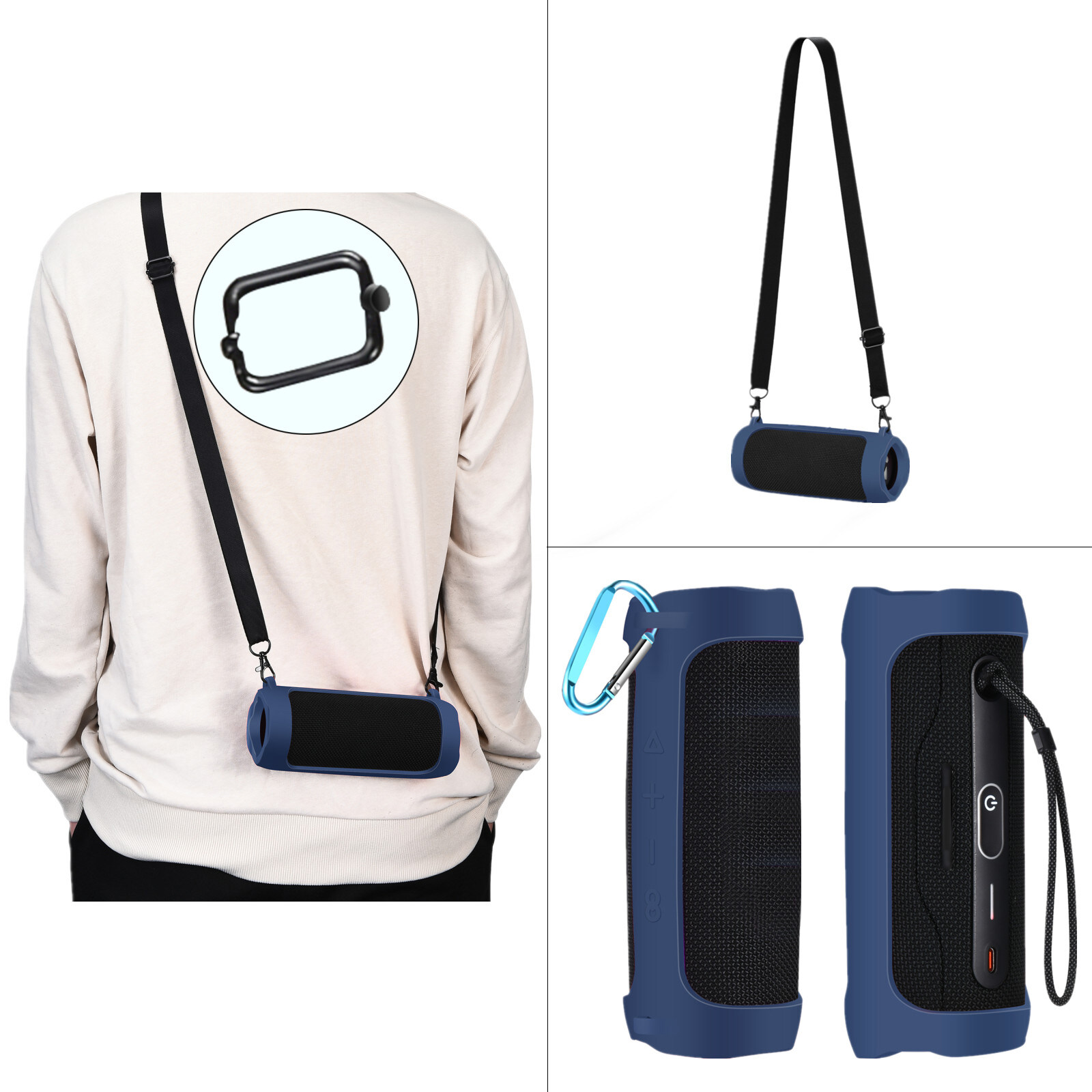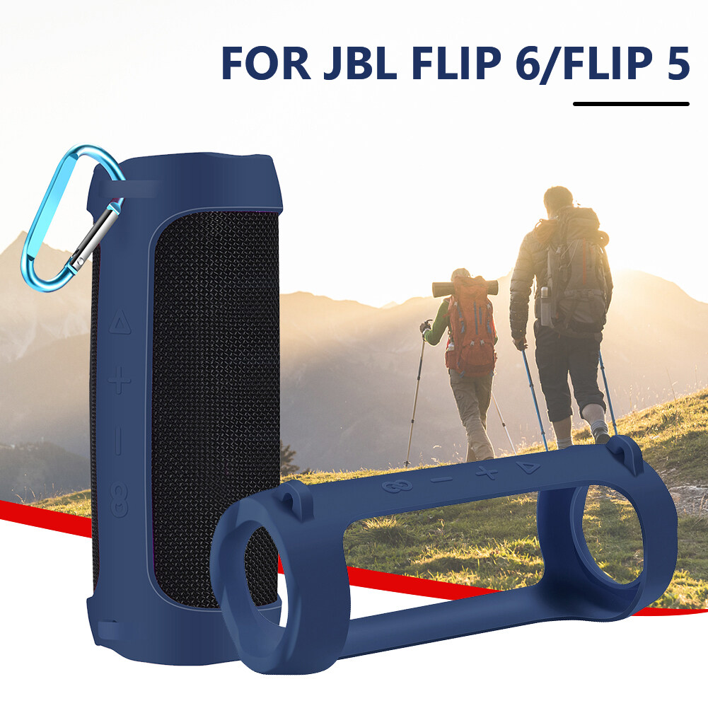 Silicone Speaker Protective Case with Carabiner Waterproof Wireless Bluetooth-compatible Speaker Carrying Pouch Cover Adjustable Strap Portable for JBL Flip 6/Flip 5