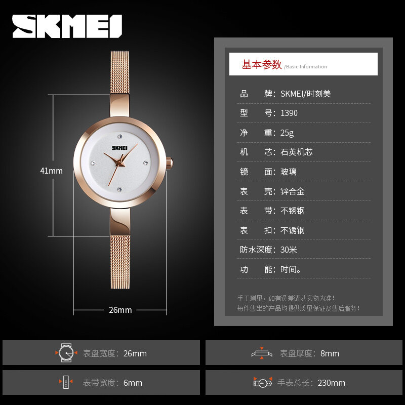 SKMEI New Women Fashion Watches Quartz Simlpe Casual Classic Stainless Steel Watch Waterproof Wristwatches 1390