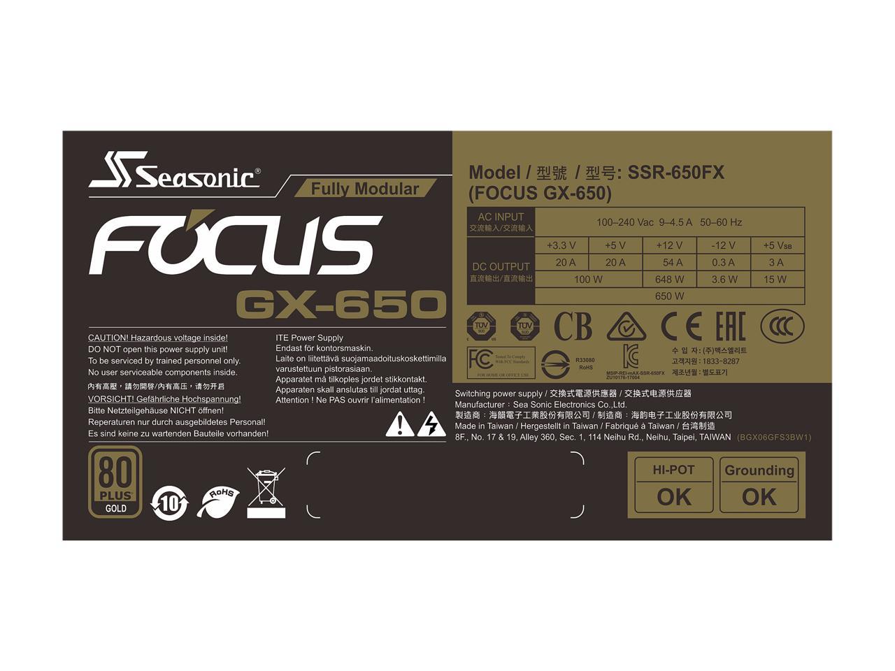 Seasonic FOCUS GX-650, 650W 80+ Gold, Full-Modular, Fan Control in Fanless, Silent, and Cooling Mode