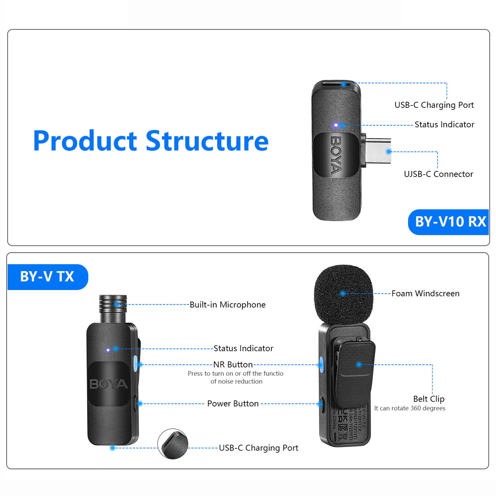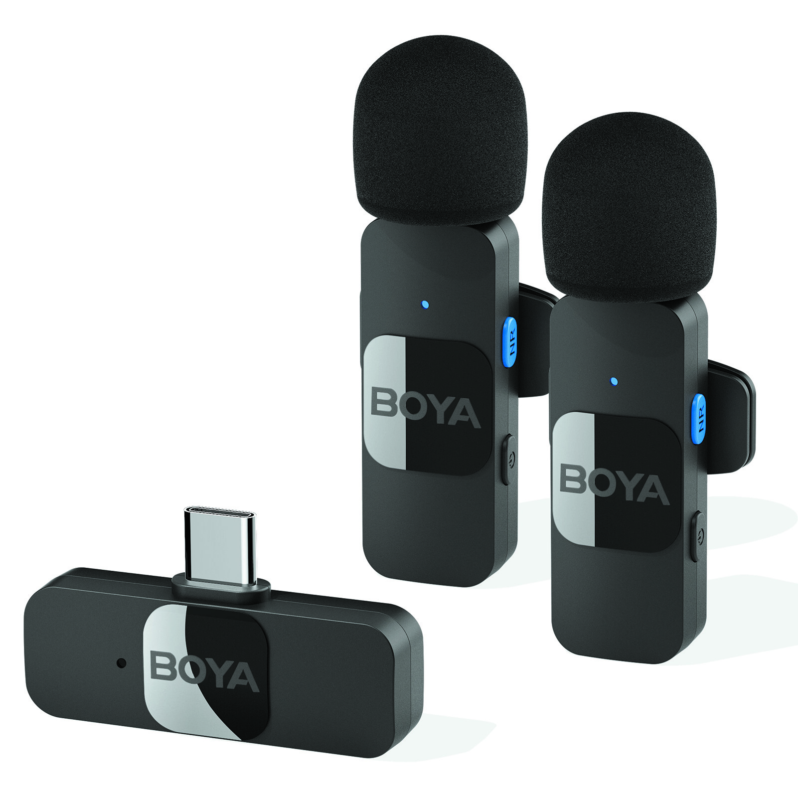 BOYA BY-V20 One-Trigger-Two 2.4G Wireless Microphone System Clip-on Phone Microphone Omnidirectional Mini Lapel Mic Auto Pairing Smart Noise Reduction 50M Transmission Range Replacement for Huawei Sam